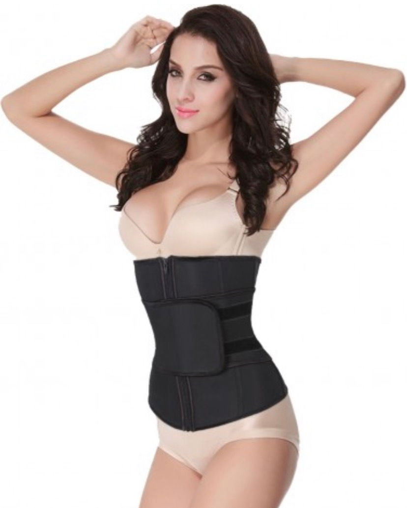 Black Zipper Plus Size Latex Waist Cincher Belt High Compression